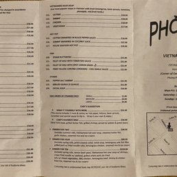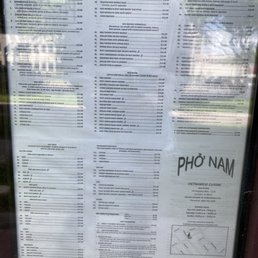 Pho Nam Menu